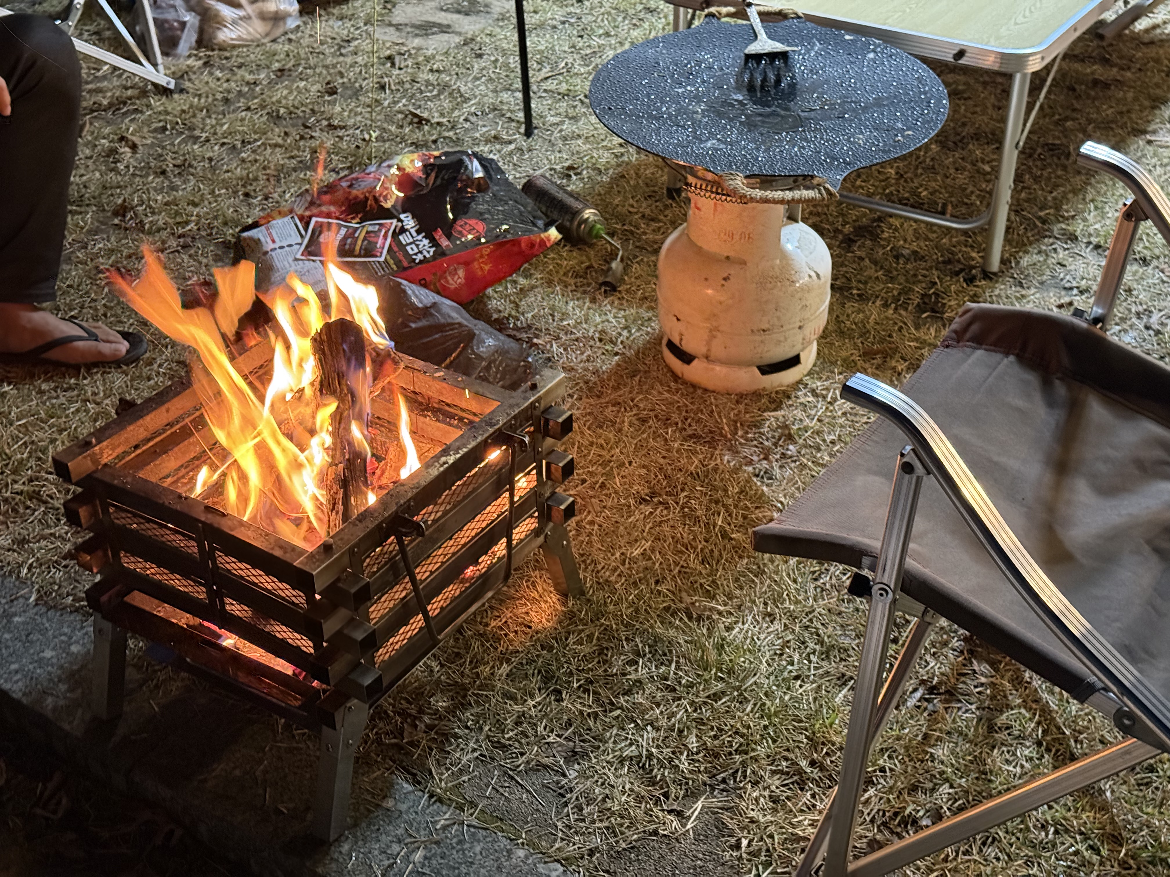 숯불에도 굽고 그리들에도 굽고~~ 인원이 많으니 하나로 부족하네요