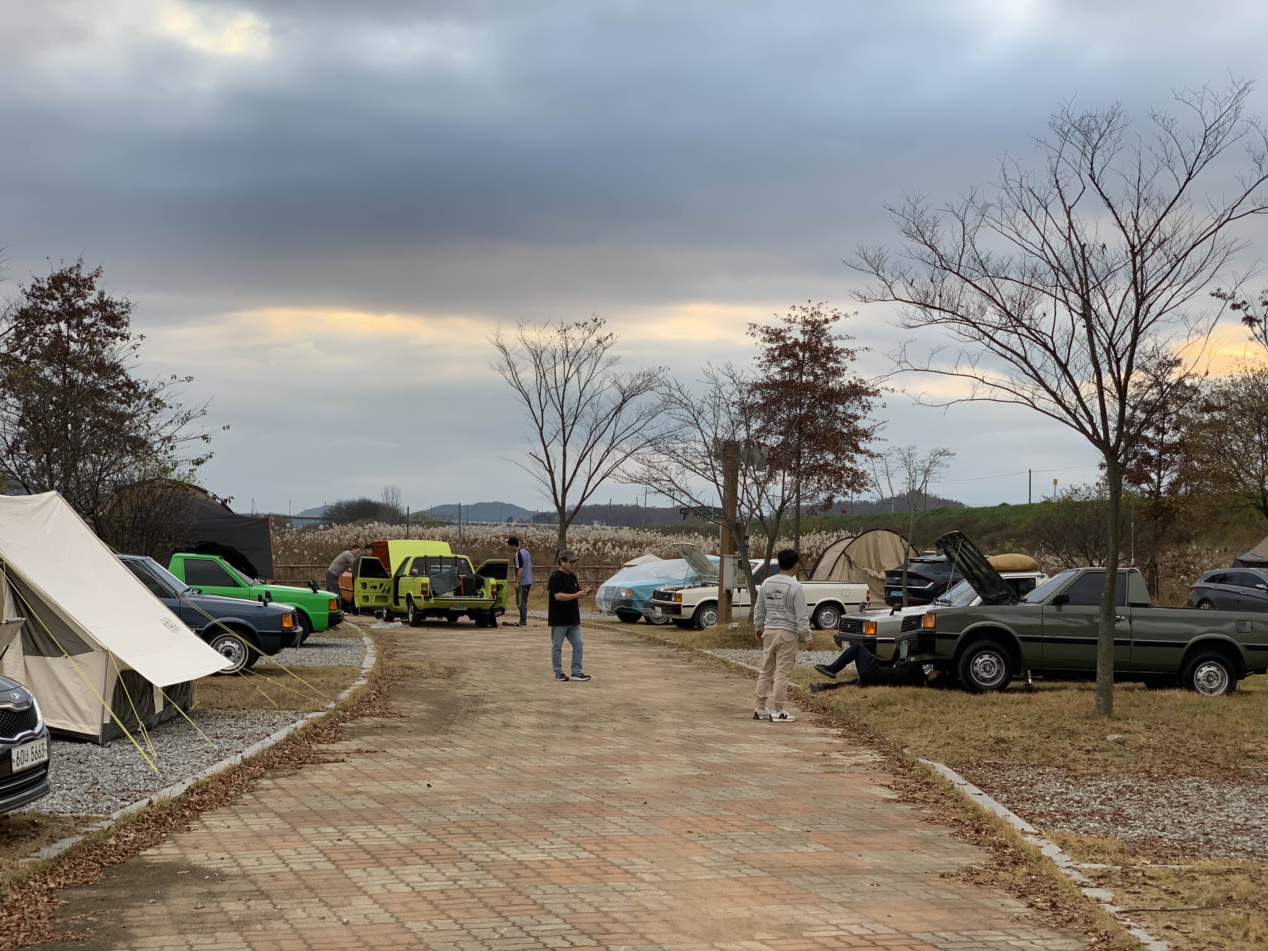 인원대비 차량이 다소 많기 때문에 코너 쪽에 연속 4개의 사이트를 대여하였습니다.