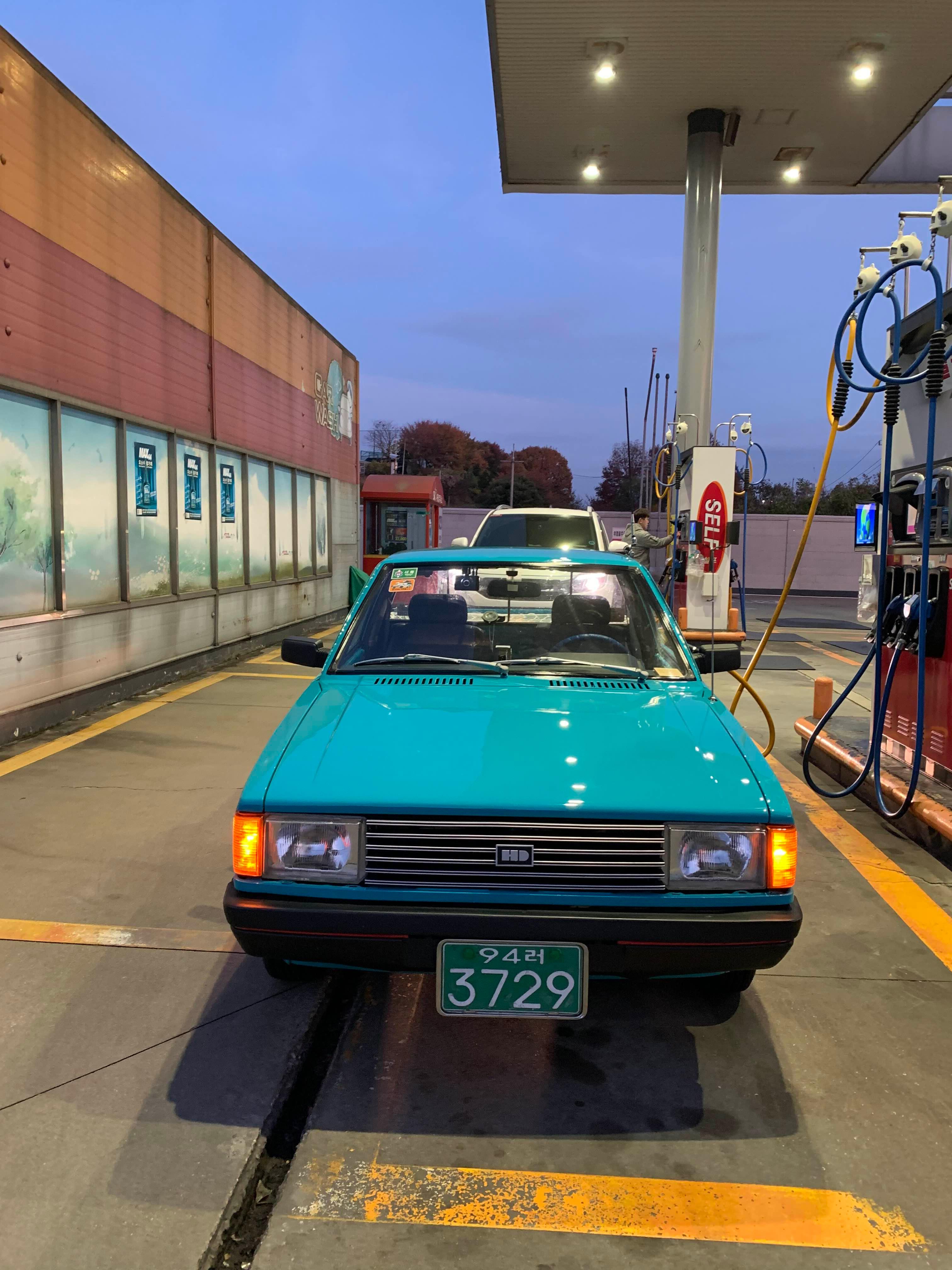 이른 새벽 청양군으로 향하기 위해 근처 주유소에서
